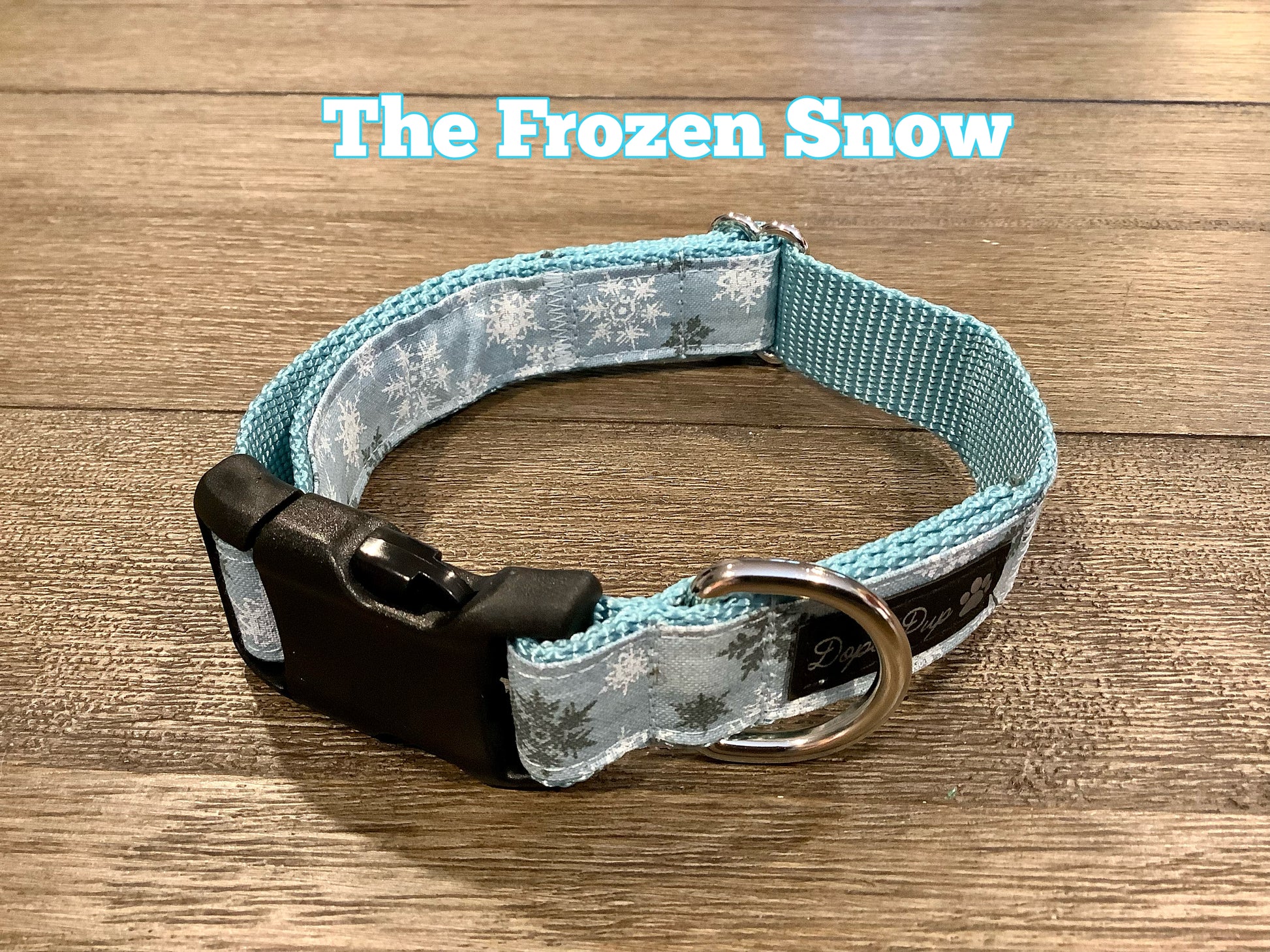 Get ready to dress your furry friend in style with our Elegant Winter dog collar! Featuring a black background with white & silvery snowflakes. This collar is perfect for both male and female dogs. Made with heavy duty silver webbing and your choice of plastic or metal buckle. It comes in a variety of sizes and widths to give your pup the perfect fit. Perfect for the holiday season or all winter long! If you choose to add a 3” flower or bow, it will match your collar.