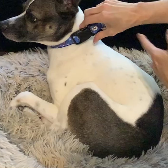 Handmade Blue Dog Collar with Winter Snowmen